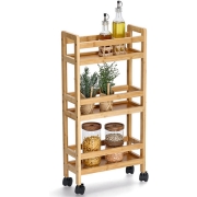 Keuken Trolley - met 3 niveaus - bruin - bamboe hout - 36 x 15 x 74 cm - 4 zwenkwielen -