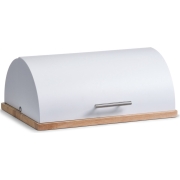 Zeller Luxe Broodtrommel - hout / wit- met klep/deksel - 39 cm - brooddoos - brood bewaardoos