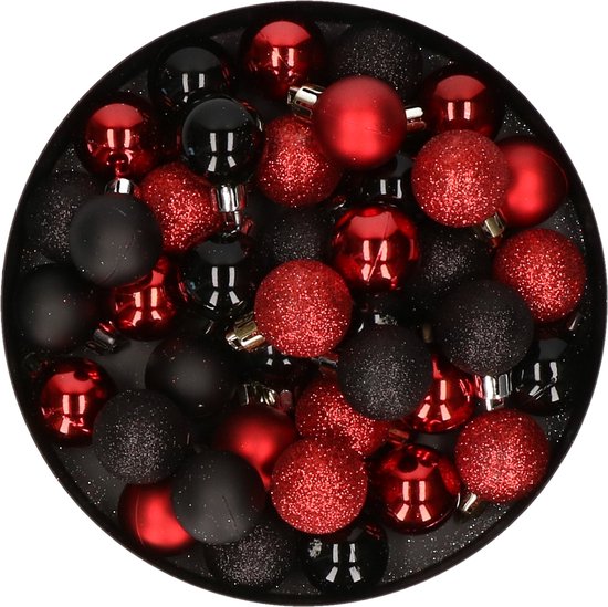 Set van 40x stuks kunststof kerstballen mix zwart en rood 3 cm - Kerstversiering