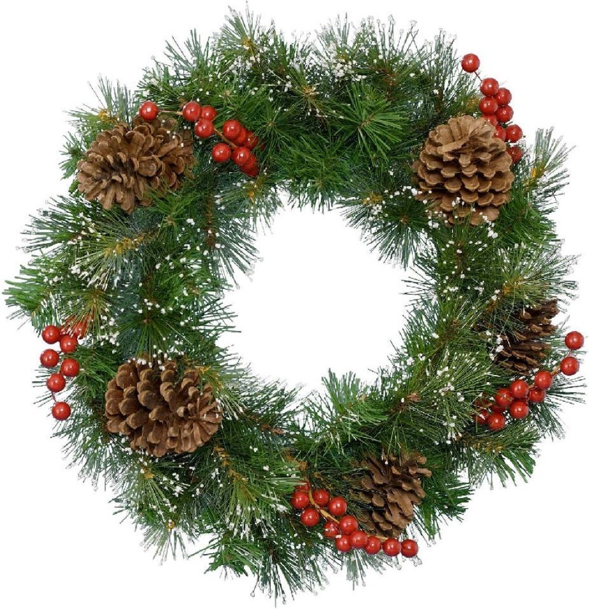 Kerstkransen/kransen voor aan uw deur of ter decoratie boven de schoorsteenmantel/schouw. Voor het ophangen van de krans hebben wij speciale hangers in het assortiment, u kunt deze vinden onder de zoekterm XMASHANGER (niet inbegrepen). Materiaal: kunststof.