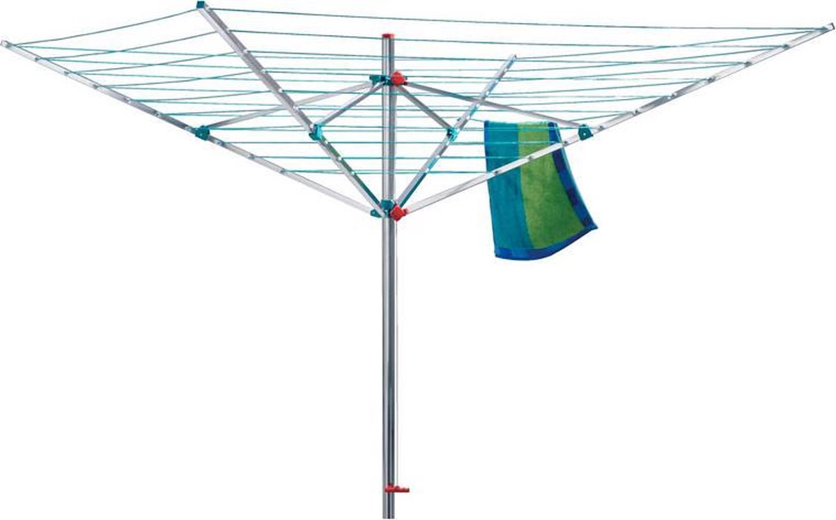 Blome droogmolen Alustar •Degelijk instapmodel van aluminium•Eenvoudige, traploze hoogte-instelling•Weer- en UV-bestendige waslijn•Vrij draaibaar•Incl.