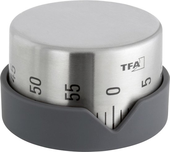 Zowel aan de zijkant als aan de bovenkant kan de nog te verstrijken tijd afgelezen worden. De kookwekker maakt een tikkend geluid tijdens het verstrijken van de tijd