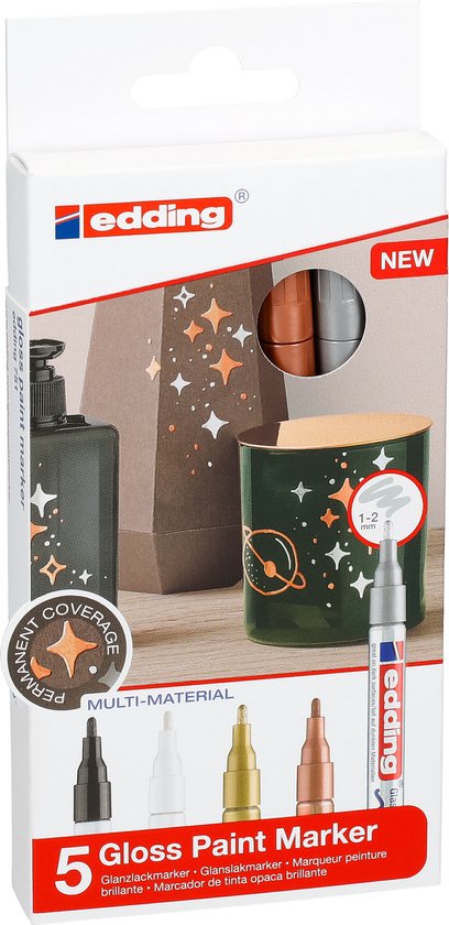 edding glanslakmarkers e-751 – 5 Metallic kleurige verfstiften – Ronde punt van 1-2 mm