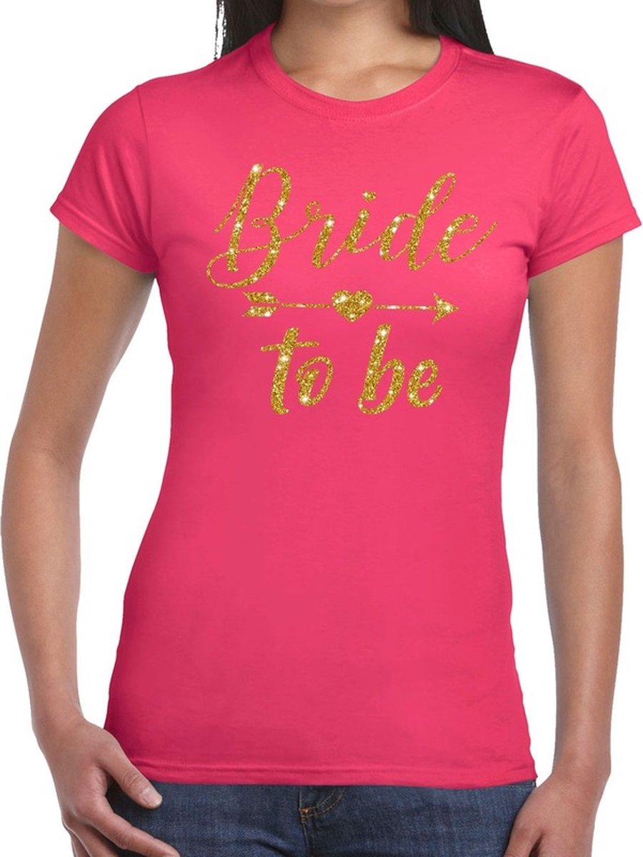 Bride to be Cupido goud glitter t-shirt roze dames M -