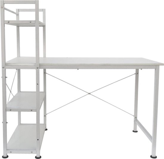 Bureau computertafel Stoer - 3 opbergplanken - industrieel modern wit - metaal hout