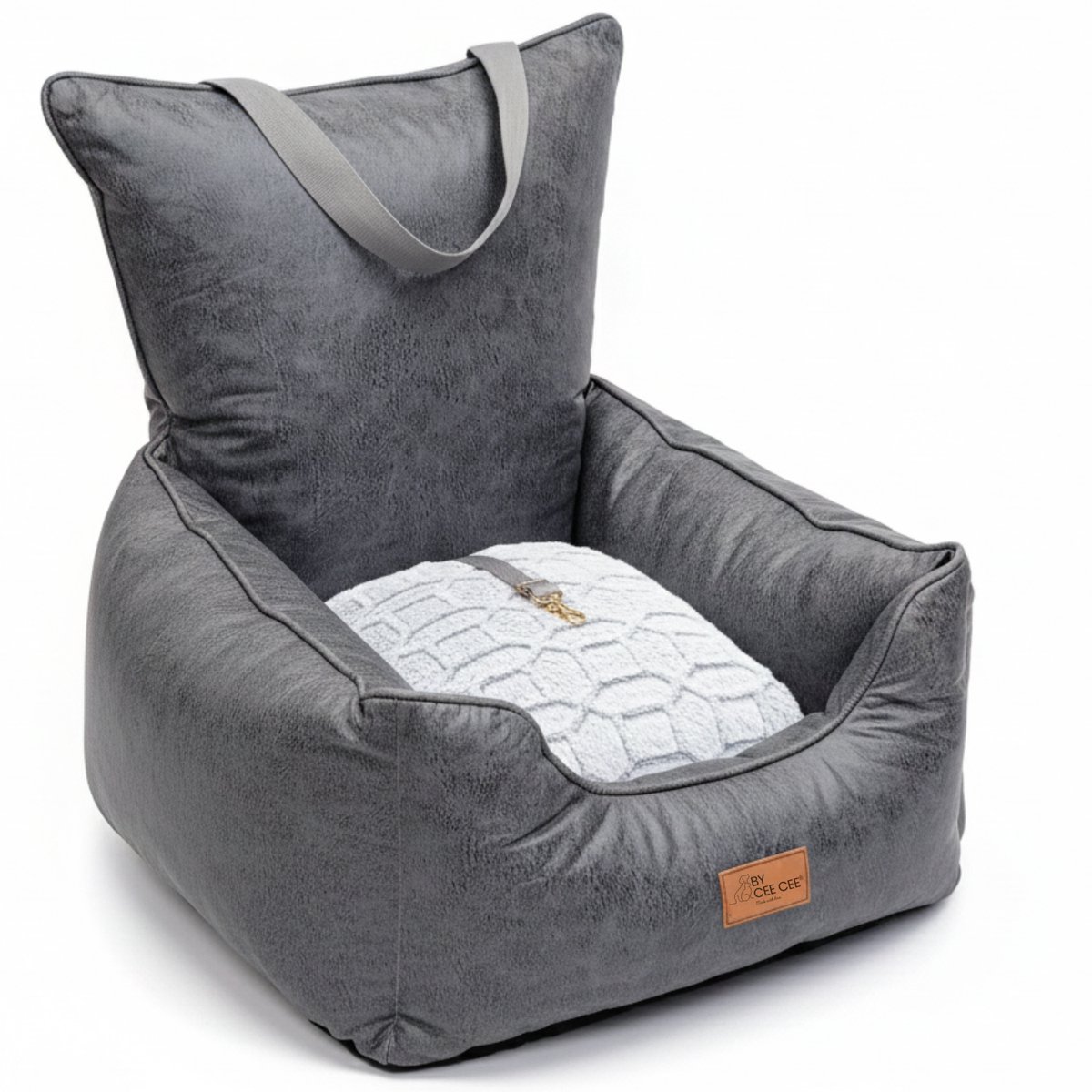 By Cee Cee Autostoel Hond Deluxe - Hondenmand Auto Met Gordel - Automand Hond - Hondenstoel - Autozitje - Donkergrijs