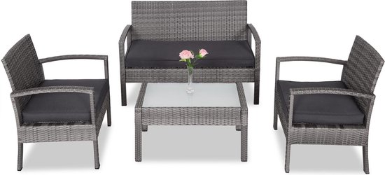 Casaria Polyrattan Loungeset – 2 Stoelen 1 Bank 1 Tafel - Antraciet