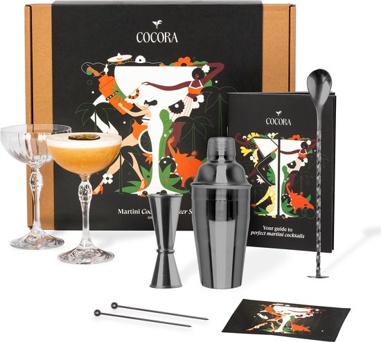 Cocora Martini Set - 9-delige RVS Cocktail Set - Cocktail Shaker - Martini Glazen - Cocktail Boek (10+ Recepten) - Luxe Cadeauverpakking - Goud