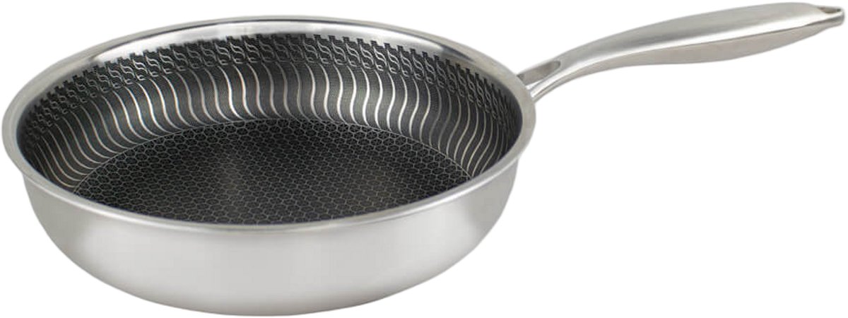 Cook&Pan - Signature Honey Koekenpan 20 cm - RVS - Inductie Pannen- Honinggraat 3-Ply PFAS-vrij - 7 jaar garantie - Zwart