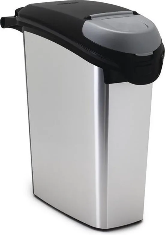Curver voedselcontainer - MetallicDeze mooie voedselcontainer is een echte eyecatcher. De voedselcontainer met Metallic look heeft een rubberen afsluitrand, waardoor de container luchtdicht blijft. Dit betekent gegarandeerd verse brokken en behoud van alle goede voedingsstoffen. Het klepje aan de voorkant in combinatie met het handvat aan de achterkant zorgt voor het gemakkelijk uitschenken van brokken.