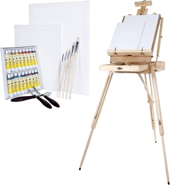 Deze XL kunstenaarskoffer bevat alle benodigdheden die het hart van kunstschilders en tekenaars sneller laat slaan. Haal de omvangrijke set snel in huis en ga van slag.