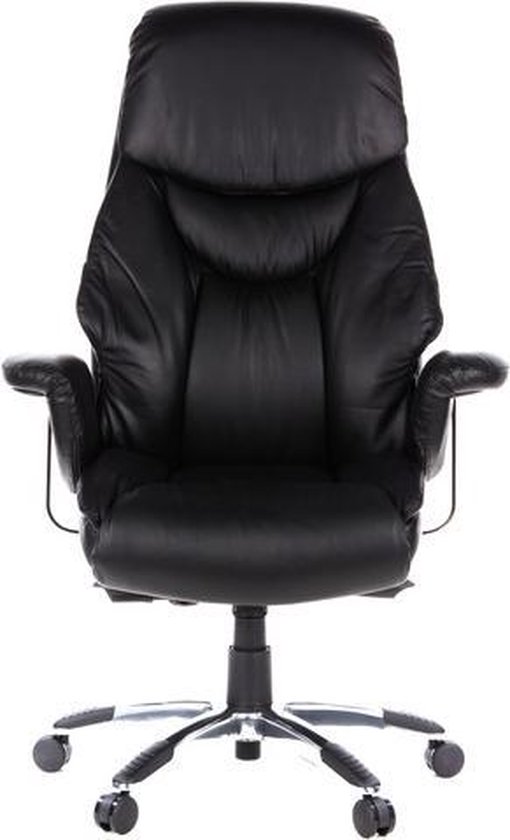 Bureaustoel XXL - Met Armleuning - Lange/Zware Mensen - Kunstleder - Zwart - Ergonomisch