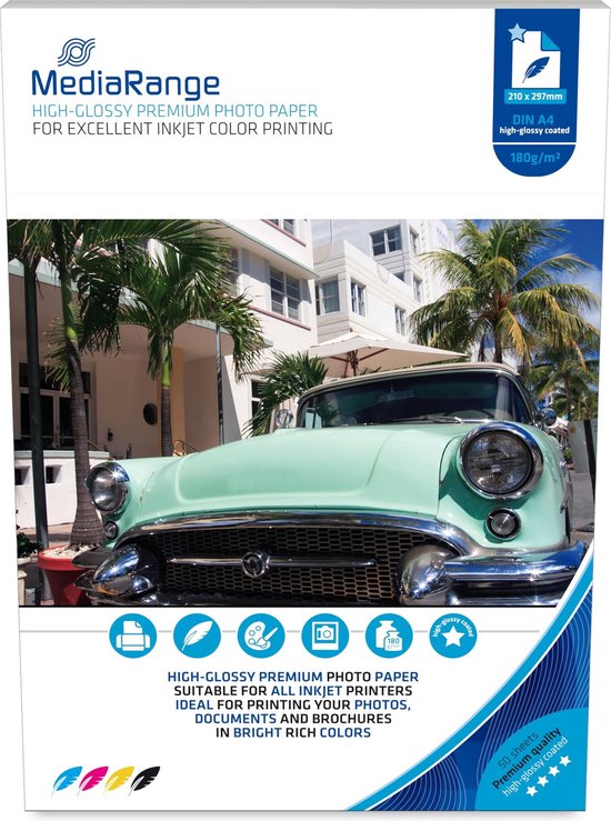MediaRange photo papier high glossy A4, 180 gr/m2, 50 vel