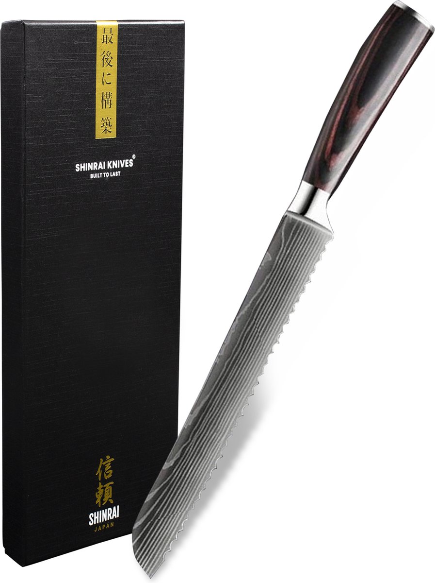 - Vlijmscherp Broodmes met een lemmet van 20 centimeter.