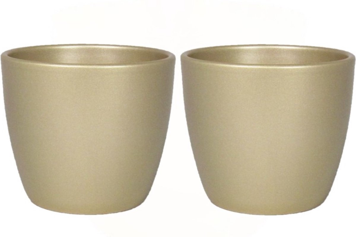 Floran Bloempot/plantenpot Mira - 2x - industrieel goud - keramiek - binnen - 29 x 14 cm -