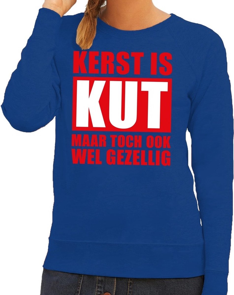Foute Kersttrui Kerst is kut maar toch gezellig zwart voor dames. Deze trui / sweater is bedrukt met de tekst: Kerst is kut, maar toch ook wel gezellig! Deze kersttrui/ sweater/ sweatshirt is van dun ongeborsteld katoen en heeft raglan mouwen. Het is dus geen dikke warme trui en kan prima gedragen worden op een kerstborrel of bij het gourmetten.