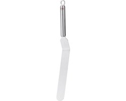 Onmisbaar in elke keuken: een goede spatel. Perfect voor het gladstrijken van topings of room, het loshalen van cake uit een bakvorm en het omgooien van een pannenkoek. Deze Global spatel leent zich uitstekend voor dit werk. De spatel is vrij klein en dun, waardoor je hem makkelijk ergens onder kunt steken. De greep is gemaakt van RVS en heeft kleine kuiltjes.