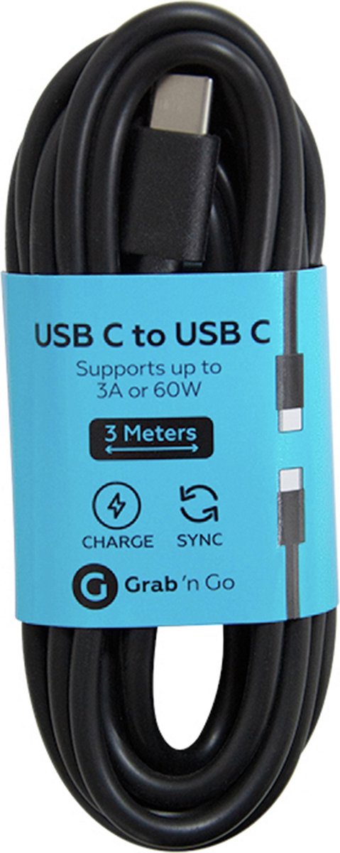 De Grab ’n Go Data Cable Type C met een lengte van 3 meter is uitermate geschikt voor het opladen van de telefoon en voor het data synchronisatie met de computer.