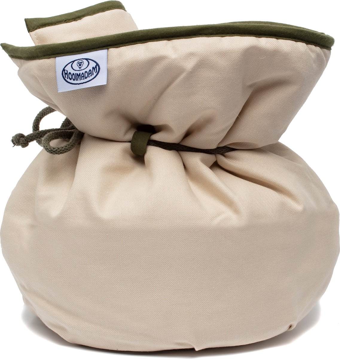 Zet je hete pan in de Hooimadam en zij zorgt ervoor dat je gerecht doorgaart; niet aanbrandt en vitamines en mineralen behouden blijven. Zo is koken geen tijdrovende en oplettende klus, maar kun je ontspannen met een boek, kinderen/familie/vrienden of je favoriete serie op de bank ploffen terwijl je eten gaart. Dit model van de Hooimadam is geschikt voor pannen met een maximale doorsnede van 26 cm.Kleinere pannen kunnen er ook in combinatie met een Hooikus in. De Hooimadam is een moderne en handzame uitvoering van de Hooikist.Echter is De Hooimadam geen kist, maar een omhulsel van katoen gevuld met schapenwol. Ze weegt 400 gram en makkelijk in elkaar te vouwen en daardoor makkelijk op te bergen.Onmisbaar in de keuken, op de boot of in de caravan. Maak je aankoop compleet door dit grote model te combineren met een Hooikus; Hooimadam klein of bestel extra voordelig een complete set.GebruikDe Hooimadam is gevuld met wol en zij zal tijdens het gebruik 'verharen'.Dit is niet erg en een natuurlijk proces van dit natuurproduct.Op een donkere Hooimadam vallen de lichte haartjes van de wol meer op dan bij een lichte kleur stof.