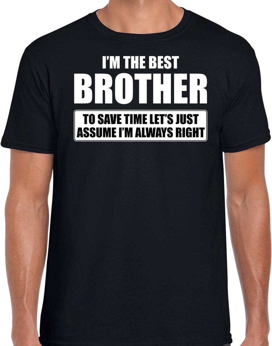 Cadeau t-shirt voor de beste broer zwart voor heren. Dit cadeau shirt is bedrukt met de tekst: I'm the best brother, to safe time lets just assume i am always right. Is uw broer de beste? Dan is dit een leuk verjaardag cadeau t-shirt of natuurlijk voor een andere gelegenheid.