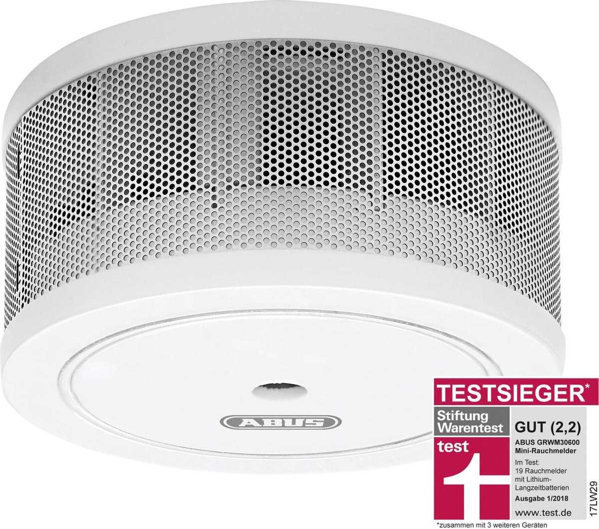 ABUS GRWM30600 Rookmelder Mini, Incl. batterij (10 jaar) werkt op batterijen (Ø x h) 70 mm x 33 mm