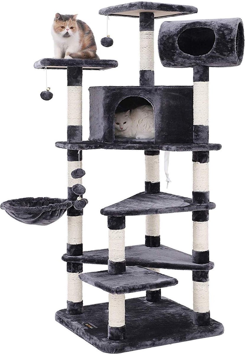 XL Extra Grote Zachte Krabpaal - Kat Speeltuin met Palen om met Klauwen te Krabben, Luxe Hok - Grijs