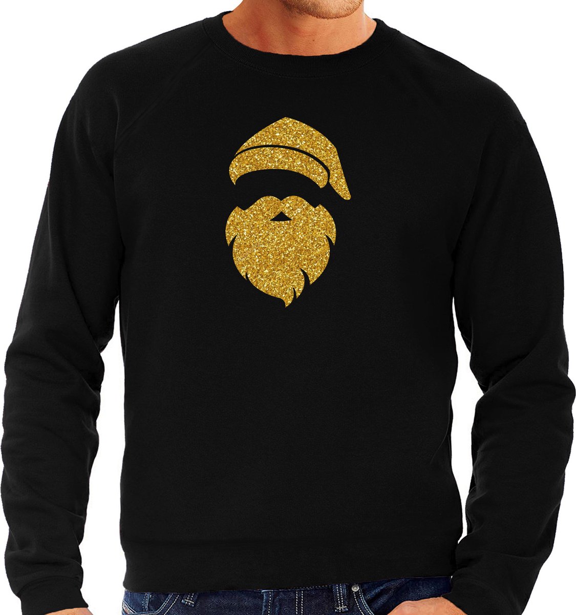 Kerstman hoofd Kerst sweater / outfit rood met gouden glitters voor heren. Op deze Kerst trui staat in gouden glitters een Kerstman hoofd. Deze Kerst sweater / trui is leuke Kerstkleding om aan te trekken met de Kerstdagen. Tijdens de Kerstborrel of tijdens het gourmetten. Materiaal: 80% katoen/20% polyester, 240 grams kwaliteit.