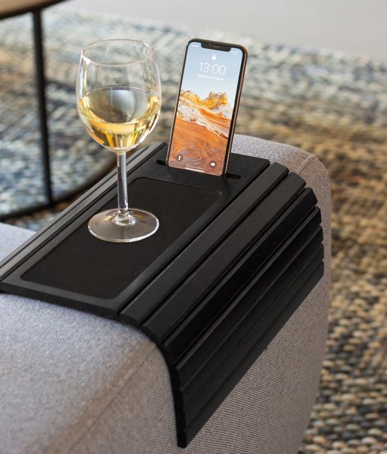 Kos Design Flexibel Dienblad Armleuning – Armleuning Bescherming – Dienblad Bank – Bamboe – Beschermende Coating - Zwart – Anti Slip
