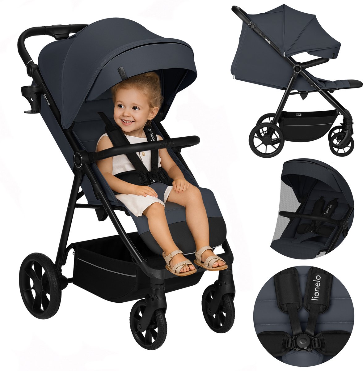 Lionelo Ingrid - Buggy - Auto-Folding Systeem - 360° EVA Wielen - XXL Luifel UPF50+ - Zwart
