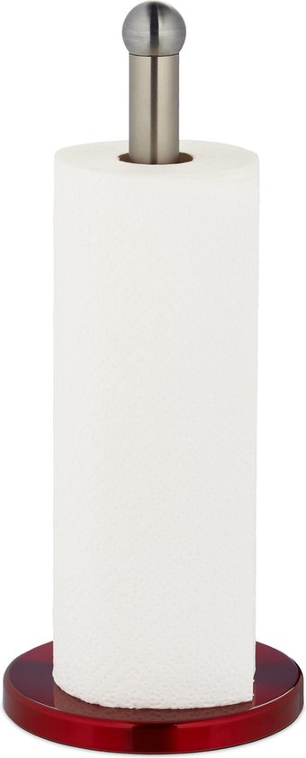 Relaxdays keukenrolhouder rvs - rolhouder staand - rood - keukenpapierhouder rond - modern
