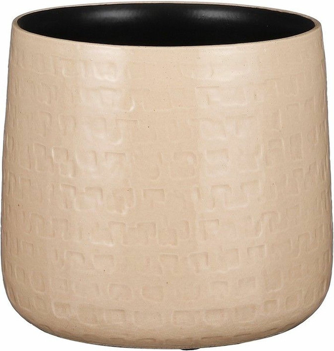 Plantenpot/bloempot van keramiek in de kleur zwart met een mooi relief patroon. Diameter 19 cm en hoogte 17 cm. Stijlvolle bloempotten voor binnen gebruik met een glanzende finish. Serie: Floyd. Het prachtige gedrukte patroon aan de buitenzijde is met de hand gemaakt in Portugal. Derhalve is geen pot exact hetzelfde en hebben de bloempotten een echt karakter.