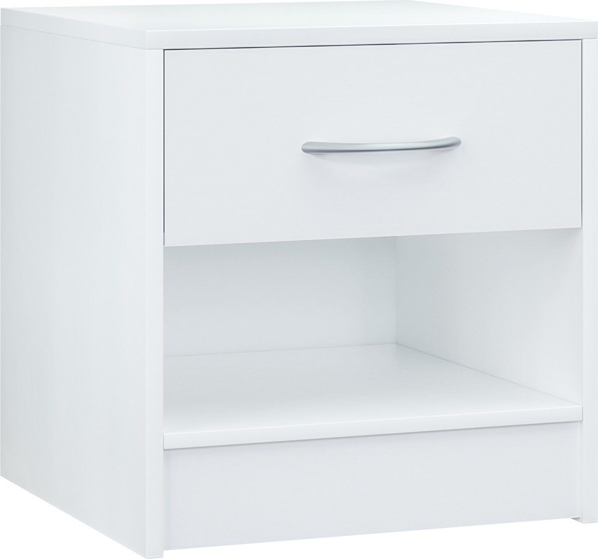 Het nachtkastje Kiel van CASARIA® brengt orde in de slaapkamer en creëert een ontspannen sfeer. Het strakke design zet puristische accenten en past bij elke inrichtingsstijl. Afhankelijk van of je slaapkamer jeugdig en romantisch, eenvoudig en minimalistisch of rustiek en gezellig is ingericht. Het compacte meubelstuk meet 41 x 39 x 28 cm en biedt veel opbergruimte voor allerlei spulletjes. Van je favoriete boek tot een bedlampje, de royale opbergruimte biedt ruimte voor alles wat je nodig hebt om comfortabel in slaap te vallen en fris wakker te worden. De soepel lopende lade met handgreep in chroomlook en een ruim open vak bieden nog meer ruimte. Het onderhoudsvriendelijke oppervlak kan worden schoongeveegd en is zeer duurzaam. Productvoordelen: eenvoudig, tijdloos ontwerp veel