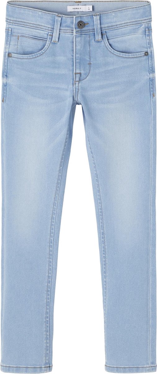Jongensjeans van het merk name it. De blauwe jeans heeft een slim fit op de heupen en x-slim fit op de benen en is gemaakt van biologisch katoen. De jeans heeft een knoop- en ritssluiting, zakken voor en achter en een verstelbare tailleband aan de binnenkant.