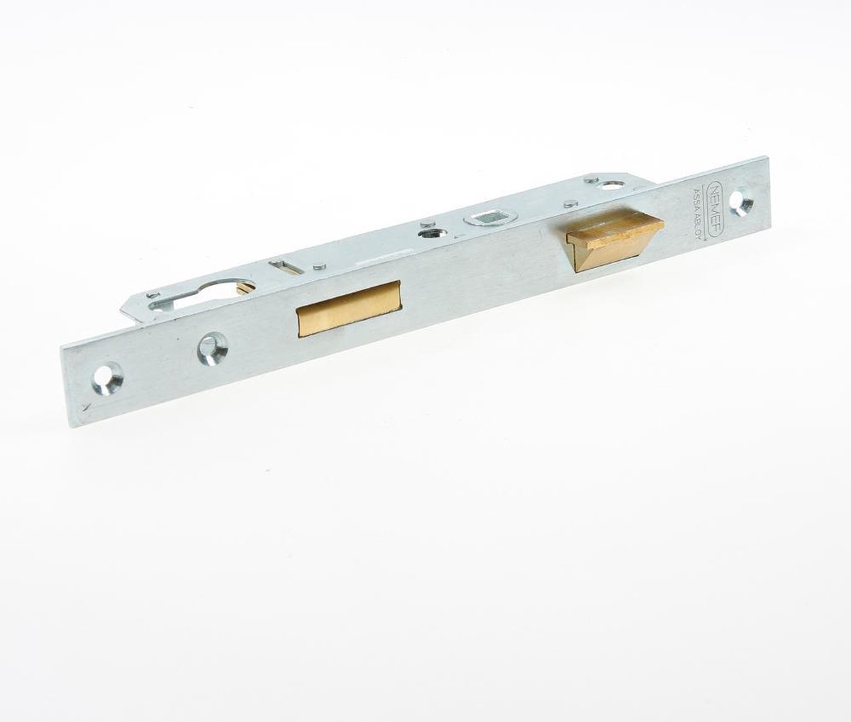 Nemef 8691 Deurslot | DM30mm | PC72mm | krukgat 8mm | voorplaat staal verzinkt 24x245mm rechthoekig | messing dag- en nachtschoot | DR 1+3 -