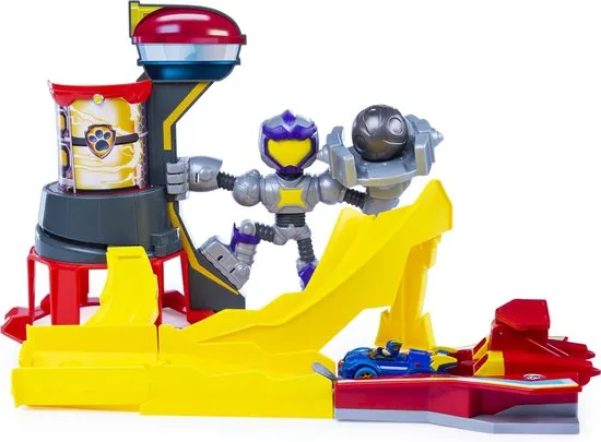 Red Avonturenstad van burgemeester Humdinger met de PAW Patrol True Metal Red Avonturenstad Racebaan Speelset. Deze baanset vol actie bevat drie reddingsscènes uit PAW Patrol De Film, een draaiende voertuiglanceerder en een exclusief metalen Marshall-voertuig op een schaal van 1.55 dat je nergens anders kunt vinden. Plaats je exclusieve voertuig op de lanceerder en laat Marshall in actie komen. Marshall racet vooruit en barst door de muur van de verlaten gehoorzaamheidsschool. Draai daarna de lanceerder om Marshall over de andere kant van het racecircuit te laten racen en het vuurwerk in het stadhuis te stoppen. Vang tot slot de burgemeester. Lanceer Marshall vanaf de Avonturenstad Hoofdkwartier en knal tegen Humdinger Heights, dat opensplijt en de burgemeester in zijn ondergoed onthult – zo grappig om te zien. Reset je PAW Patrol-set en speel de reddingsacties uit de film keer op keer na. De Red Avonturenstad Racebaan Speelset werkt met alle PAW Patrol True Metal-voertuigen met een schaal van 1.55 en is de perfecte manier om de spanning van PAW Patrol De Film thuis opnieuw te beleven. Verzamel voor nog meer snelle missies en reddingsacties de PAW Patrol De Film True Metal-speelgoedvoertuigen op een schaal van 1.55 (elk afzonderlijk verkocht). PAW Patrol True Metal-speelgoed voor jongens en meisjes is het perfecte cadeau voor kinderen en PAW Patrol-fans. Speel je favoriete scènes uit PAW Patrol De Film na met de Red Avonturenstad Racebaan Speelset.