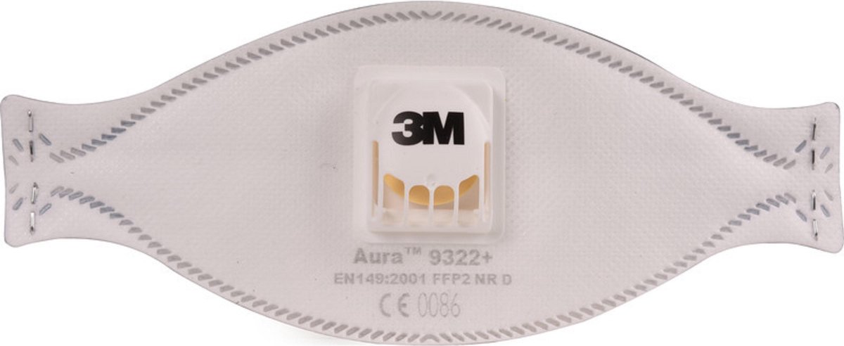 Merk 3M3M Aura 9322+ stofmasker FFP2 NR D met uitademventiel beschermt tegen stofdeeltjes tot 10x de grenswaarde. Het stofmasker heeft een ingenieus ontwerp met drie panelen en past op veel verschillende gezichten.