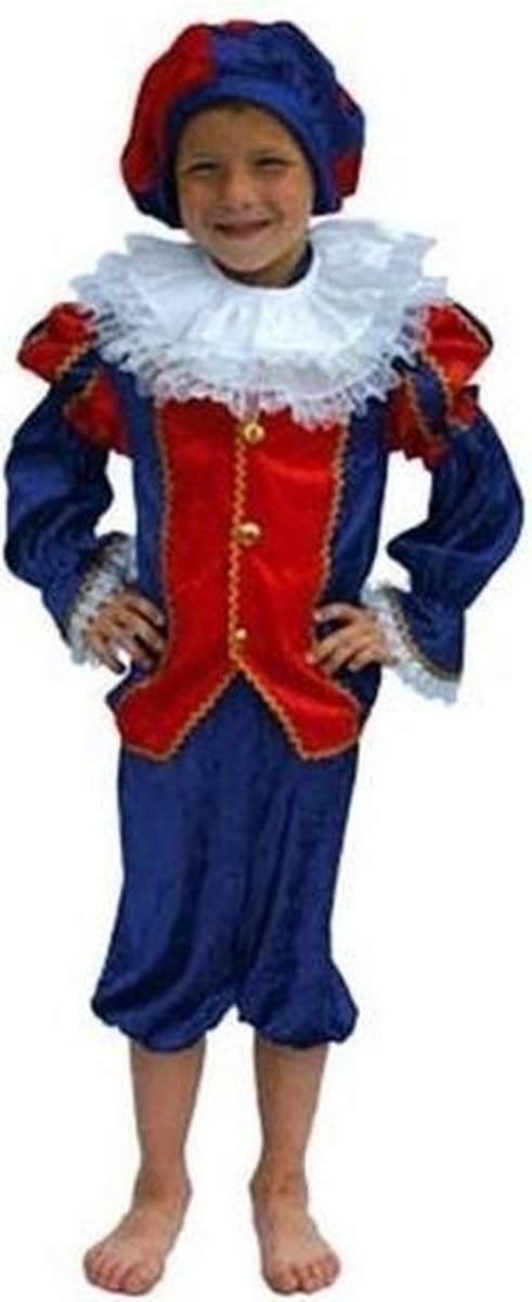 Pieten pak voor kinderen rood/blauw. Pieten pakken voor kinderen in de kleuren blauw met rood. Dit blauw/rode Piet kostuum voor kinderen is inclusief baret, kraag, shirt en broek. Naast dit Pieten pak rood/blauwvindt u in ons assortiment meerdere Piet artikelen.