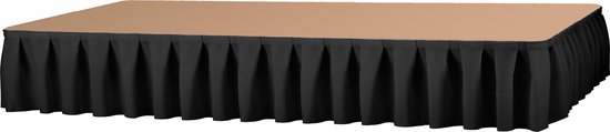 Luxe podiumrok met plooi: deze chique podiumrokken geven ieder podium een klassieke uitstraling. De rokken zijn geplooid met plooimethode boxpleat 250%. Dit percentage geeft aan hoeveel meter stof er wordt gebruikt voor een strekkende meter: de plooimethode boxpleat 250% bevat tweeënhalve meter stof per meter podiumrok. Dit zorgt voor een volle, rijke plooi met een klassieke uitstraling. Met een totale lengte van 410 cm is deze podiumrok zeer geschikt voor podia van verschillende samenstellingen en verhoudingen. Op de rand van de podiumrok is een vrouwelijke strip klittenband bevestigd. Met los verkrijgbaar mannelijk klittenband kan de podiumrok kan op de rand van ieder podium worden bevestigd.Podiumrok Boxpleat 250%Hoogte: 40 cmLengte: 410 cmKleur: wit* LET OP: voor bevestiging aan een podium is een rol mannelijk klittenband nodig.