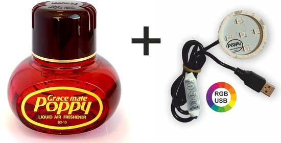 POPPY GRACE MATE® Luchtverfrisser Vanille Grace Mate Poppy is van een zeer hoge kwaliteit en heeft daardoor een enorme levensduur van wel 3 tot 6 maanden. Poppy Grace Mate is wereldwijd bekend in de automotive markt puur door zijn kwaliteit. De Poppy Grace Mate flesjes hebben een inhoud van 150ml en zijn eenvoudig te bevestigen door middel van de meegeleverde dubbelzijdige tape. De levensduur is te regelen door de dop die draaibaar verstelbaar is in te stellen op de door uw gewenste vernevelingssterkte.