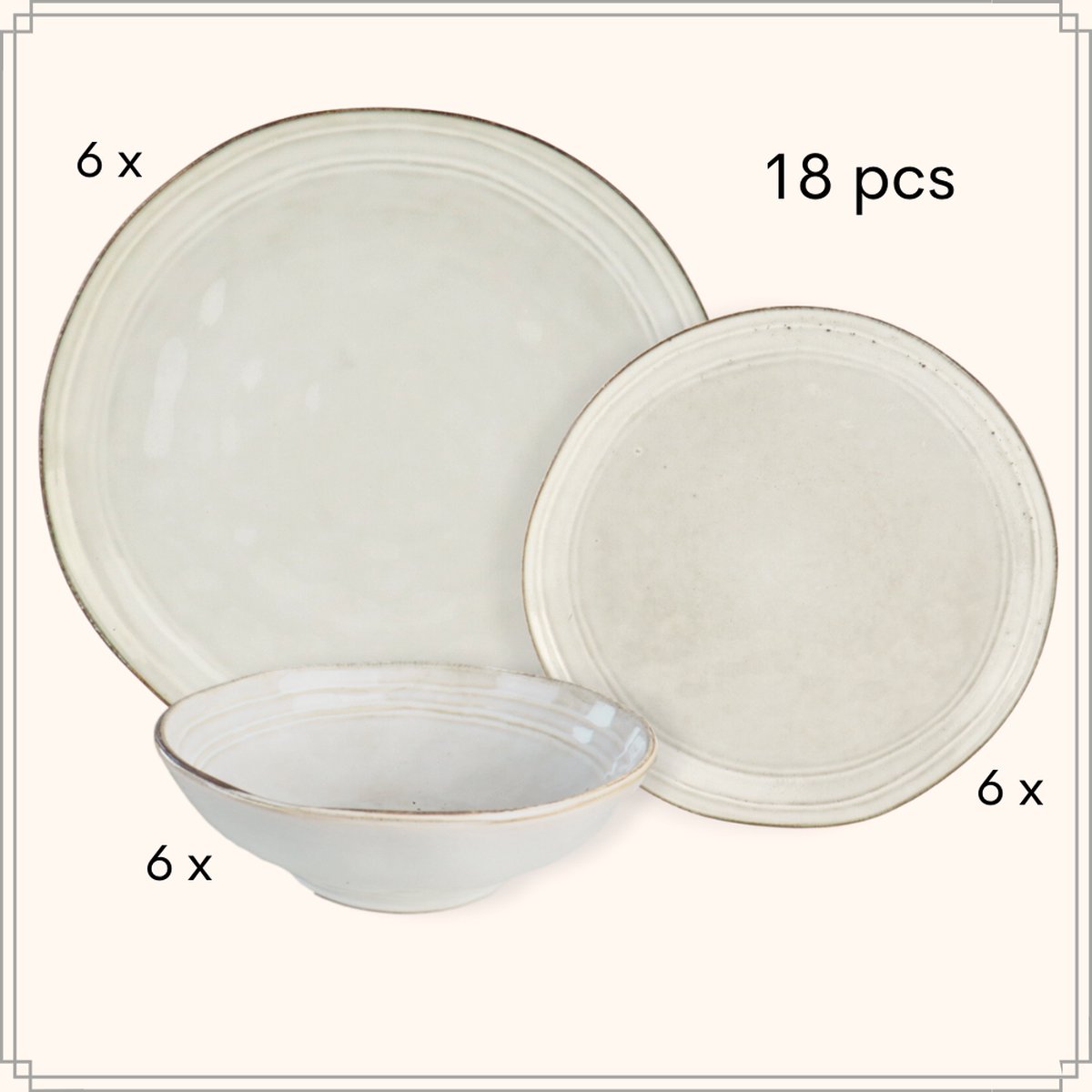 OTIX Serviesset - Bordenset - 18-Delig - 6 Persoons - Beige - Keramiek - LILY
