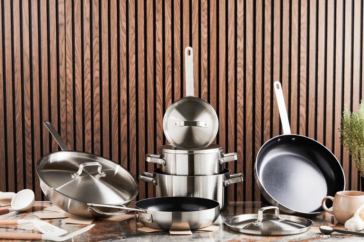 Deze 10-delige set bevat : - 3 roestvrijstalen steelpannen 16/18/20 cm - 3 roestvrijstalen koekenpannen 20/24/26 cm - 3 deksels met roestvrijstalen handgrepen 16/18/20 cm - afneembare handgreep Beschrijving: 1. Pannen en koekenpannen - Hoogwaardig 18/8 roestvrij staal - Zeer gemakkelijk op te bergen dankzij het ruimtebesparende stapelbare ontwerp en de afneembare handgreep - De afneembare, ergonomische, hittebestendige handgreep klikt in één beweging vast en los - Uitgerust met een schenktuit voor het eenvoudig uitgieten van vloeistoffen - Alle branders inclusief inductie - Oven- en vaatwasmachinebestendig - Kleur: zilver - Afmetingen: 16/18/20 cm en 20/24/26 cm 2. Deksels - Ergonomisch en praktisch in gebruik: de stevige, hygiënische roestvrijstalen handgreep is hittebestendig en zorgt voor een goede grip - Voorzien van afvoergaatjes, ideaal voor gebruik met je kookgerei dat een schenktuit heeft - Het glazen deksel is transparant, zodat je kunt zien wat je kookt - Afmetingen: 16/18/20 cm - Kleur: zilver 3. Verwijderbare handgreep Klik de afneembare handgreep van de pan op de steelpan en vice versa! Ontklem en plaats in de oven, bewaar restjes in de koelkast, bespaar ruimte in de vaatwasser en serveer aan tafel!