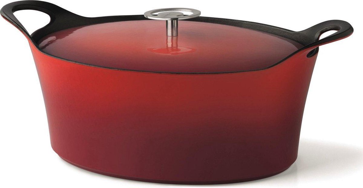 Korte omschrijving Geschikt voor alle warmtebronnen Materiaal binnenlaag: Emaille Geschikt voor de oven tot 270°C Uitgebreide omschrijving Op ambachtelijke wijze vervaardigd uit gietijzer. Gietijzer absorbeert de warmte goed en lang als een oven. Hierdoor is garen, sudderen en stoven een gemak. Het be-druppel deksel zal het vlees sappig houden. Met perfecte hitte geleiding door en rond de gehele pan en deksel.