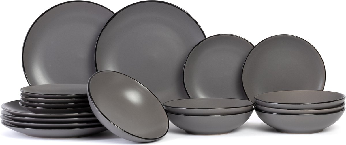 Deleca Serviesset 6 Persoons Kyoto - Koffiekopjes met oor / Schaaltjes / Grote Borden en Kleine