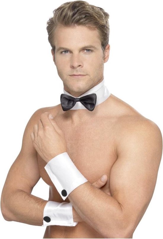 Stripper setje: 2 manchetten en boord met vlinderstrik