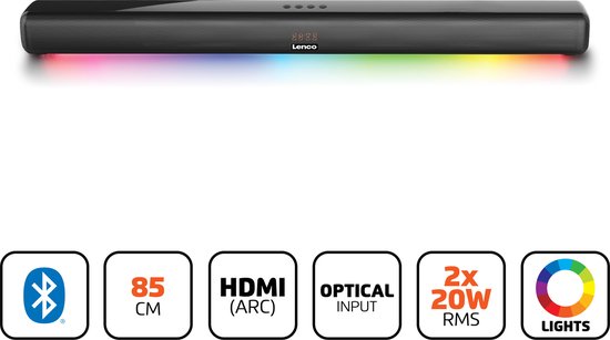 Lenco SB-042LEDBK - Soundbar met Bluetooth - 85cm - HDMI en LED verlichting - Zwart