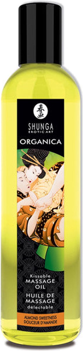 Geniet van het van het geven of ontvangen van een sensuele, erotische massage met behulp van Shunga's exclusieve mix van koudgeperste olie van amandelolie, druivenpitolie, sesamolie, avocado-olie, vitamine E, essentiële olie saffloerolie, extracten van ylang-ylang en yohimbe, en afhankelijk van de geur, essentiële olie extracten van lavendel, rozenbloesem, perzikbloesem, appelbloesem, oranjebloesem, en vanille. Deze oliën werden zorgvuldig geselecteerd op hun stimulerende en energieke kwaliteiten. Ze glijden soepel en gemakkelijk over je huid. Geen vette sensaties!