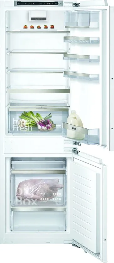 Met deze moderne Siemens KG39NAXCF koel-vriescombinatie kan je je producten optimaal bewaren. De hyperFresh 0°C lade biedt namelijk de beste vochtigheid en temperatuur voor vlees en vis en dankzij de gescheiden temperatuurregeling is er geen onderlinge geuroverdracht. Bewaar flessen of het flessenrooster en breng producten snel op gewenste temperatuur door middel van superVriezen of superKoelen. Ontdooien is bijna nooit meer nodig dankzij het NoFrost systeem en voor nog meer gemak is de koelvriescombinatie ook te verbinden met de Home Connect app.