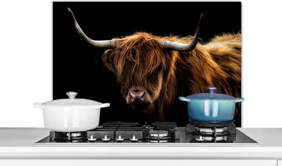 Spatscherm keuken - Achterwand keuken - Dieren - Koe - Boerderij - Zon - Lucht - Hek - Keuken - Wanddecoratie - Spatbord - 80x55 cm