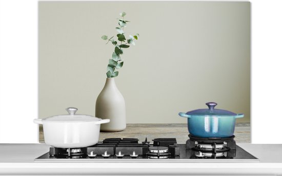 Spatscherm Keuken - Kookplaat Achterwand - Spatwand Fornuis - 60x40 cm - Eucalyptus - Stilleven - Vaas - Aluminium - Wanddecoratie - Muurbeschermer - Hittebestendig