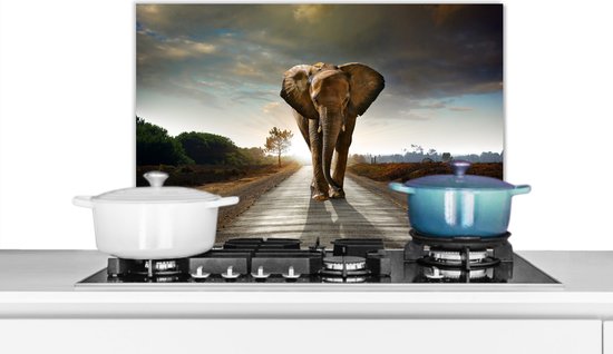 Spatscherm - Spatwand keuken - Olifant - Zonsondergang - Dier - Water - Spatwand - Keuken decoratie - Spatscherm dieren - 80x40 cm - Muurbeschermer